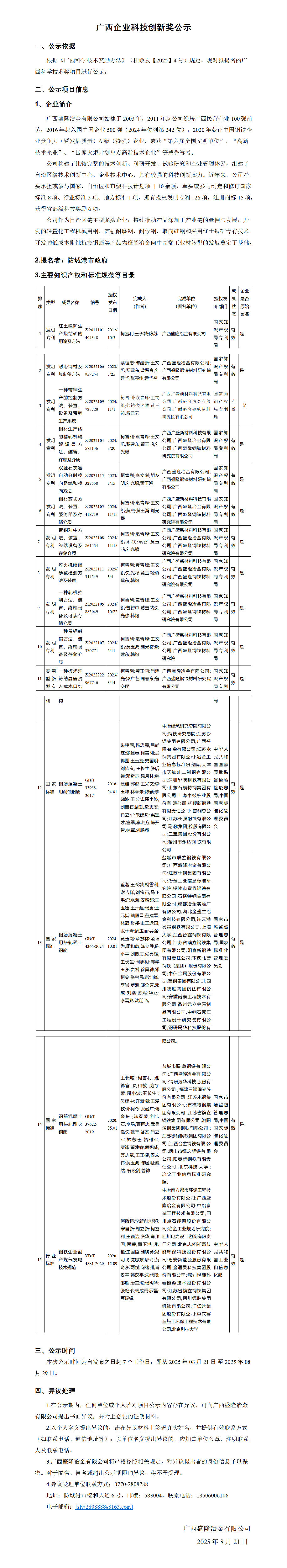 广西企业科技创新奖公示